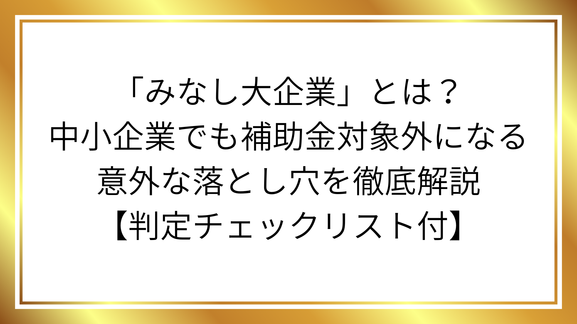 「みなし大企業」の規定は、限られた補助金予算を、本当に必要とする中小企業に届けるための「公平性のフィルター」なのです。