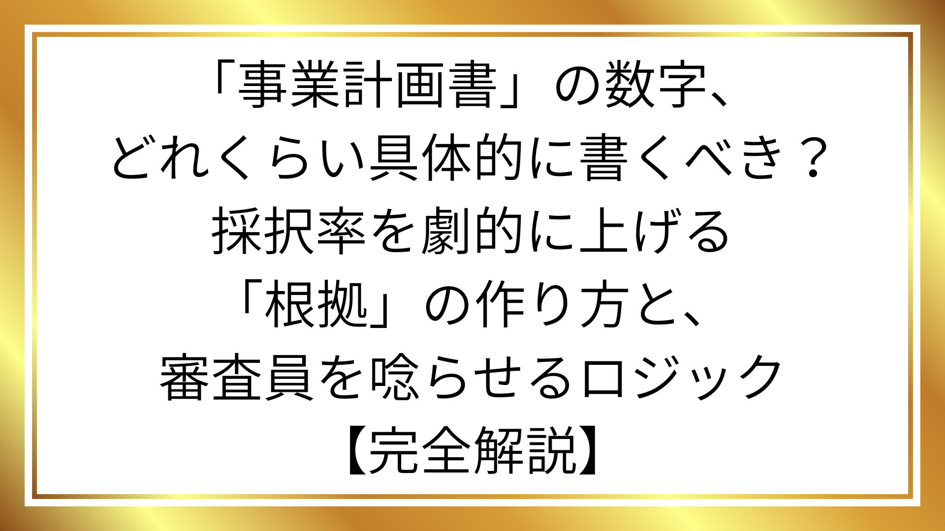 今回は、事業計画書の「数字の具体性」について解説しました。