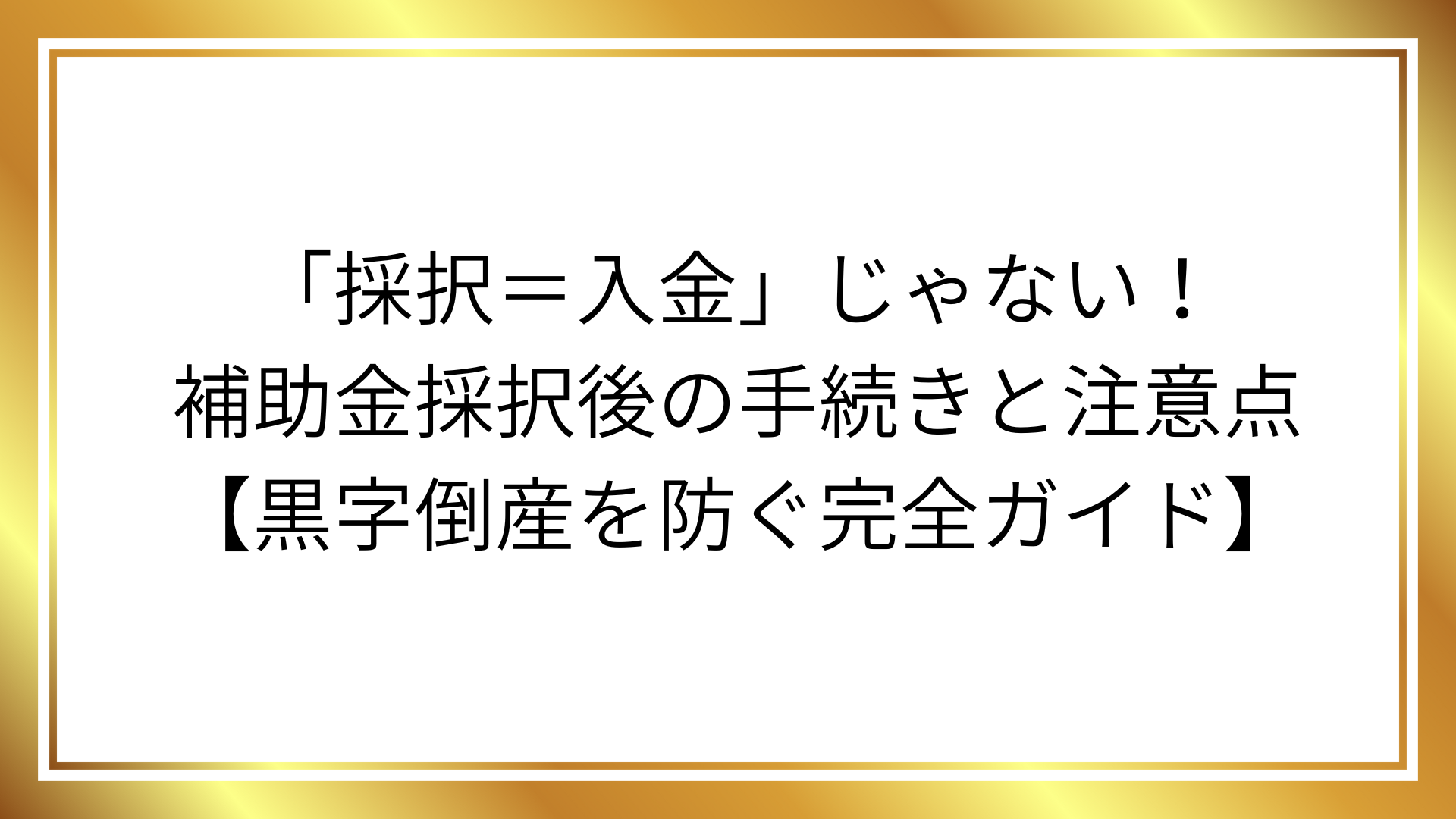 この記事は、見事「採択」を勝ち取った経営者様、あるいはこれから申請を行う経営者様に向けた、「採択後から入金までの完全攻略マニュアル」です。
