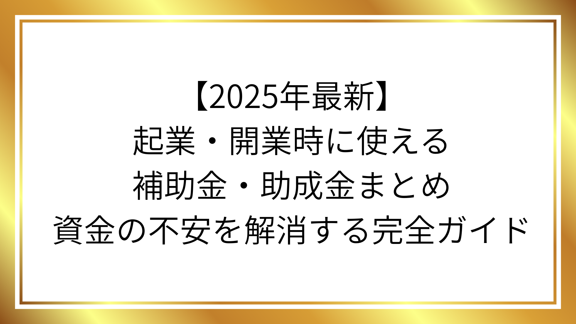 この記事は、これから起業する、あるいは開業したばかりの個人事業主・中小企業経営者様に向けた、「起業・開業時に使える補助金・助成金の完全まとめ」です。