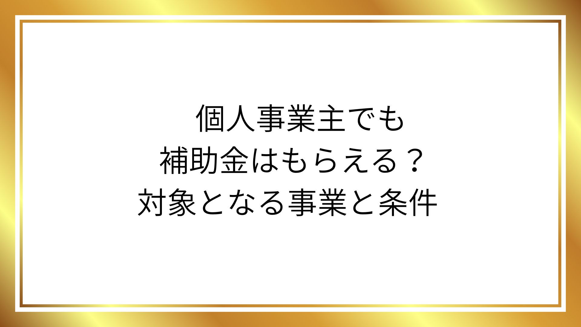 はい、個人事業主こそ、補助金・助成金を活用すべきです。