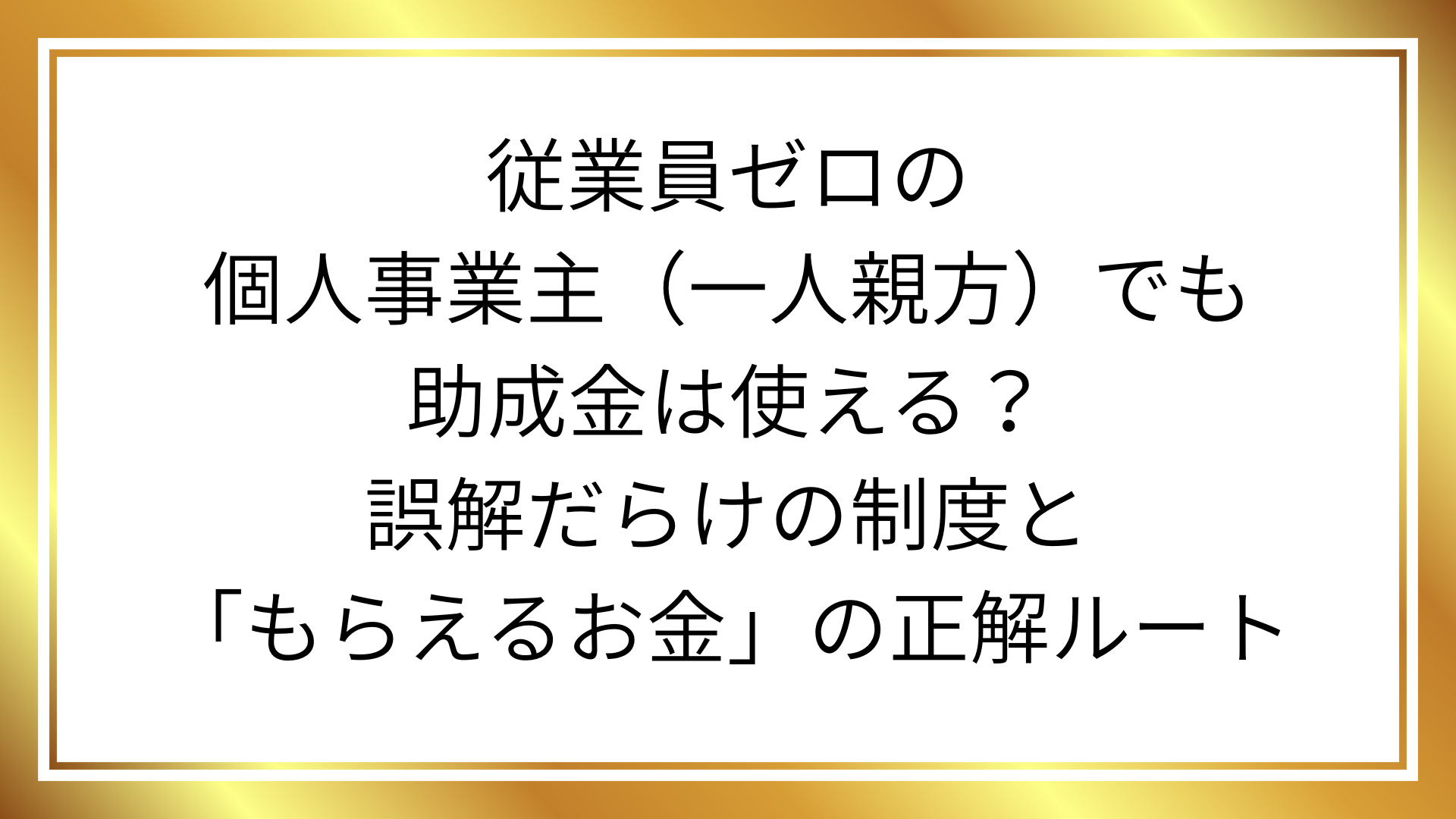 つまり、「従業員ゼロなら『助成金』は諦めて、『補助金』を全力で獲りに行く」。これが正解のルートです。
