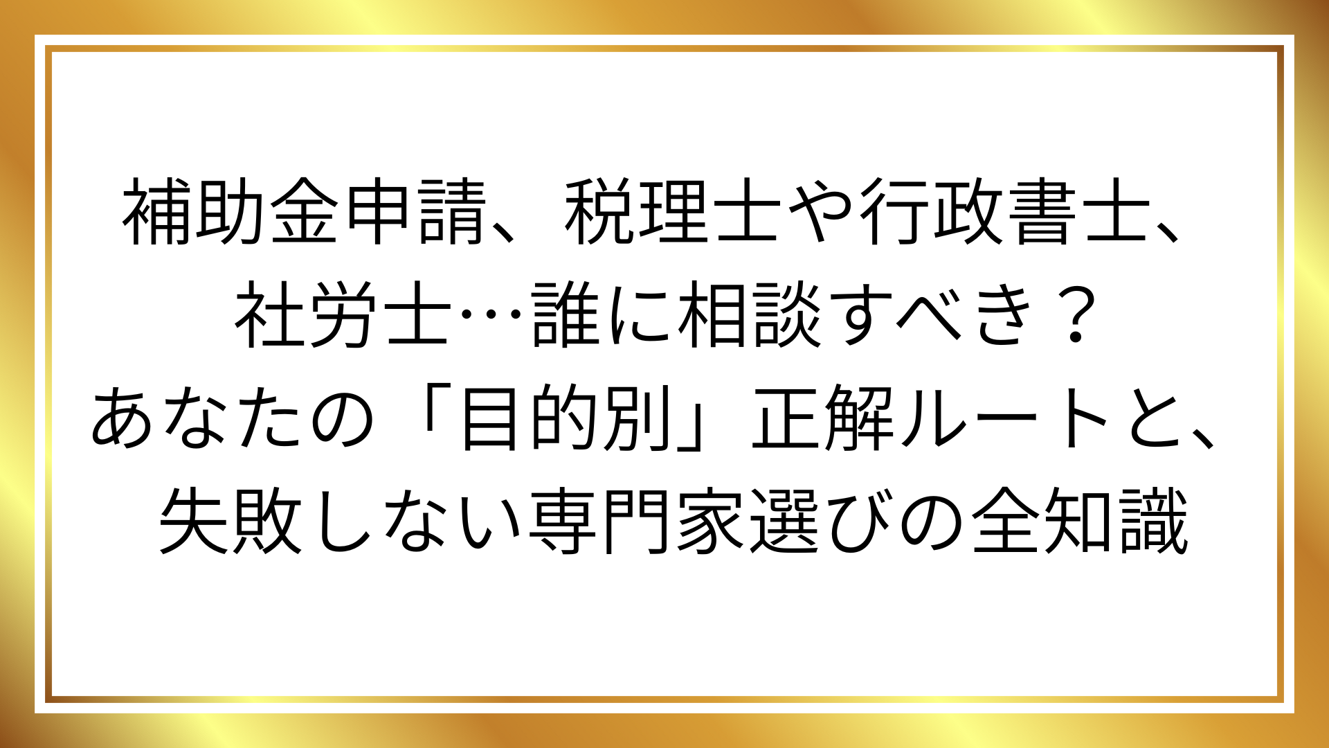 今回は、複雑な「補助金の相談相手」について解説しました。