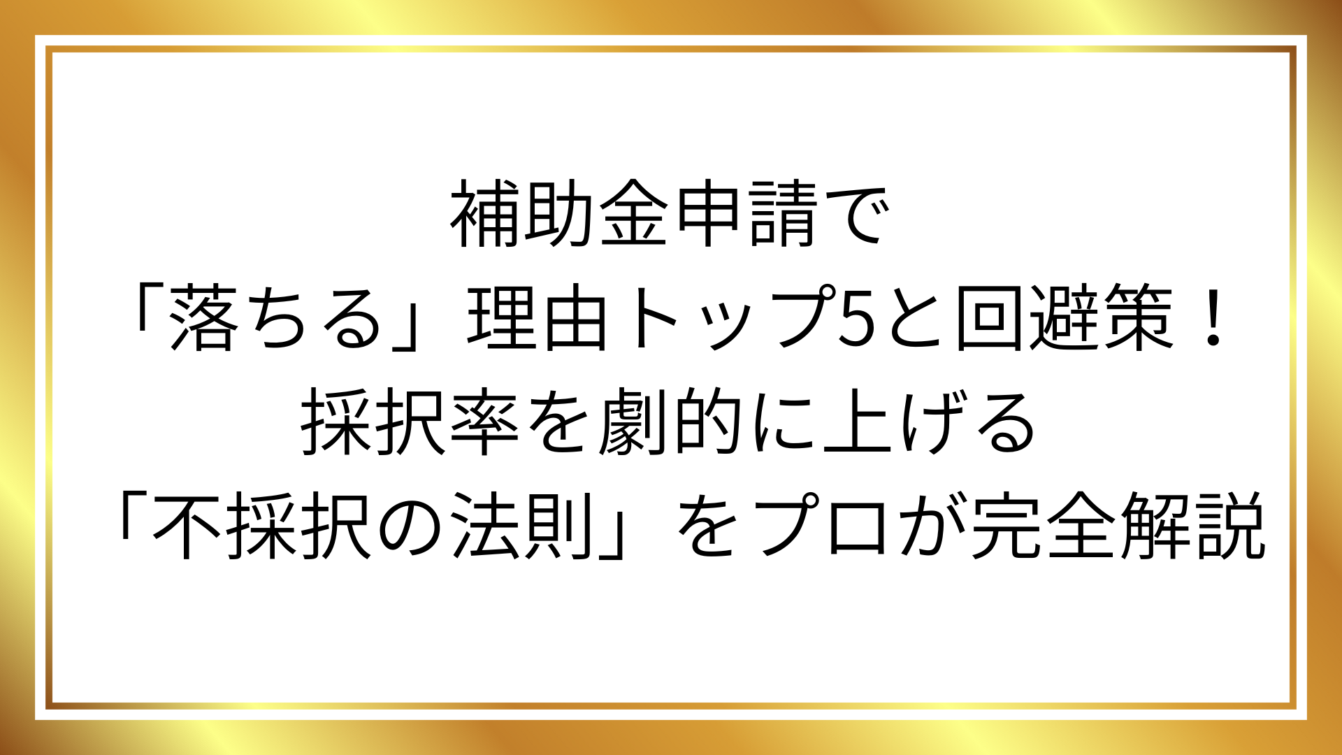補助金の審査に「運」の要素はほとんどありません。落ちる申請書には、明確な「落ちる理由(不採択の法則)」が存在します。