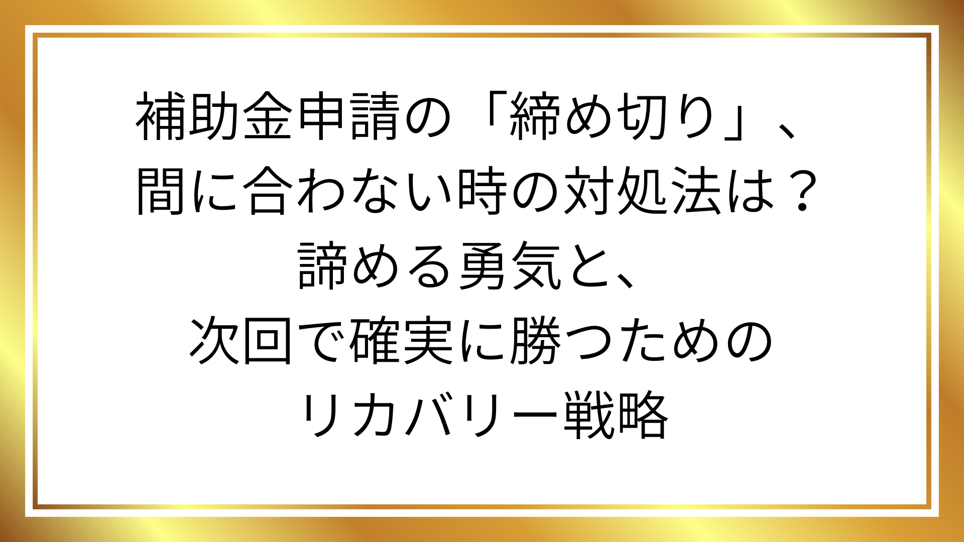 今回は、補助金の締め切りに間に合わない時の対処法について解説しました。