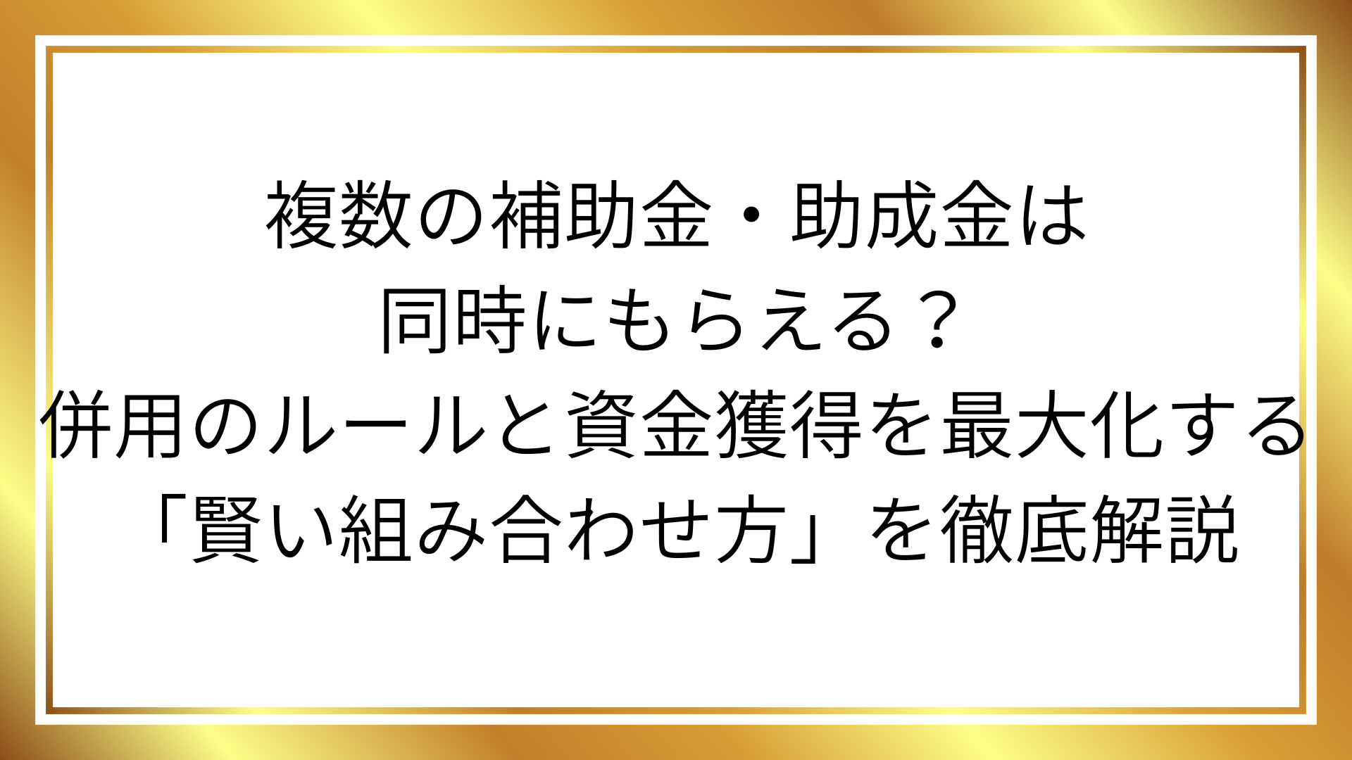 「複数の補助金・助成金を同時に受け取ることは『可能』です」。